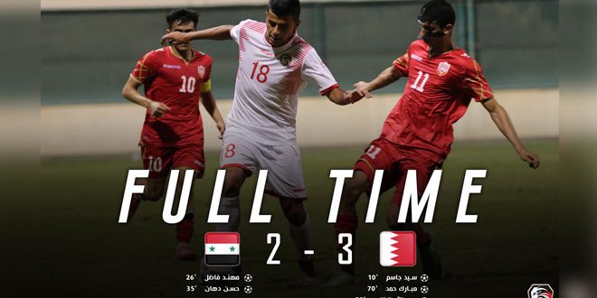 خسر منتخب سورية للشباب بكرة القدم أمام نظيره البحريني بهدفين لثلاثة أهداف في المباراة الودية التي جمعتهما اليوم في البحرين.