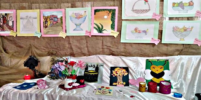 ضم المعرض السنوي لطالبات الثانوية المهنية الأولى لخياطة الملابس بدرعا مجموعة أعمال متنوعة في التطريز والرسم والكروشيه والمهن اليدوية.