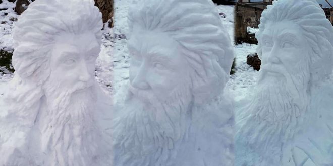 بلغته الخاصة وأدواته البسيطة حاور الفنان التشكيلي علي سلوم ابن بلدة شين بريف حمص كرات الثلج ليخرج منها منحوتة مميزة متقنة الصنع لفتت انتباه كل من رآها وتداولها العديد من رواد ومتابعي مواقع التواصل الاجتماعي.