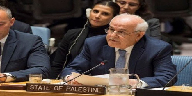جدد مندوب فلسطين الدائم لدى الأمم المتحدة رياض منصور مطالبته المجتمع الدولي بتطبيق قرارات الشرعية الدولية وإنهاء الاحتلال الإسرائيلي وإقامة الدولة الفلسطينية المستقلة على خطوط الرابع من حزيران 1967 وعاصمتها القدس.