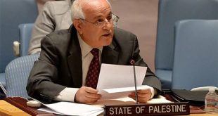 جدد مندوب فلسطين الدائم في الأمم المتحدة رياض منصور مطالبته بوقف الإرهاب الذي تمارسه قوات الاحتلال الإسرائيلي ومستوطنوه، وبتوفير الحماية الدولية للشعب الفلسطيني .