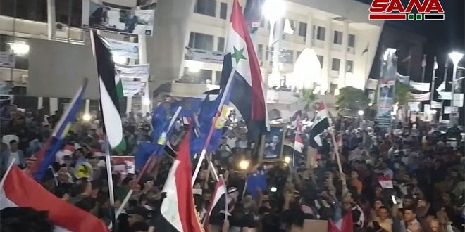 من الأجواء الاحتفالية في مدينة الحسكة بإنجاز الاستحقاق الرئاسي