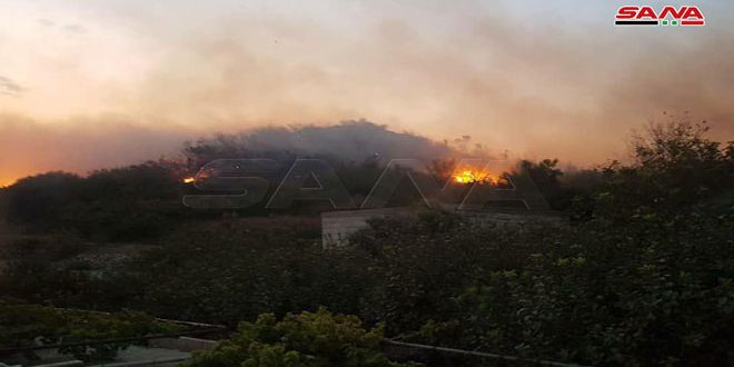 من الحرائق التي اندلعت اليوم في بلدة الجويخات بريف حمص الغربي