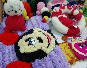 ووفقاً للمشاركة دينا نعيم فإن المعرض شكل فرصة لها لتقديم ما تنتجه من الألبسة بخيطان الصوف وسجاد الصالونات والغرف وتصميم ألعاب ومناظر طبيعية من خيطان الصوف.
