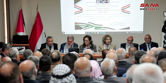 بينما طالب رئيس اتحاد الكتاب العرب الدكتور محمد الحوراني الأدباء والمثقفين بإعلان المواجهة والمقاومة وأخذ دورهم التاريخي بدعم الصمود وتأريخ الواقع النضالي الذي نعيشه الآن في غزة وفلسطين ومواجهة الإرهاب في سورية.