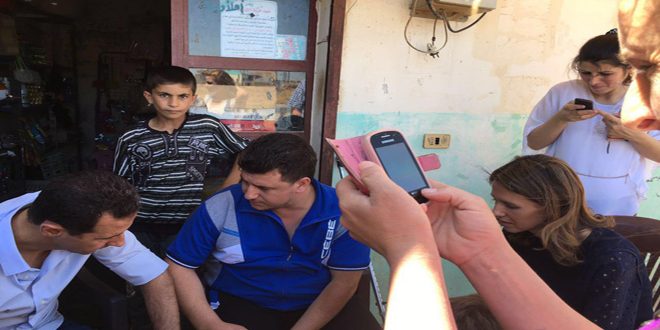 من زيارة الرئيس الأسد وعائلته للجريح عيسى رامز الإبراهيم في مشروعه الصغير بقرية تنونة بريف حمص
