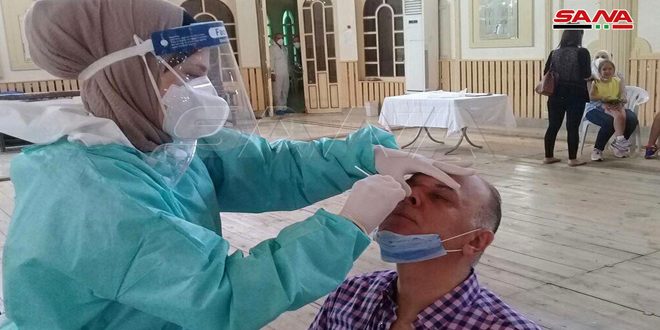 من صالتي الجلاء وتشرين بدمشق… أخذ المسحات الخاصة باختبار الكشف عن فيروس كورونا (بي سي آر) 2020-08-16 تصوير: أيمن نصر-أسماء الدوس