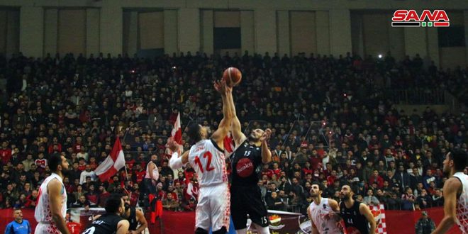 من مباراة فريقي الاتحاد والجيش بكرة السلة في صالة الأسد الرياضية