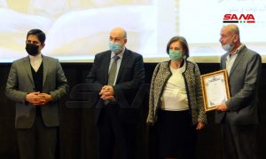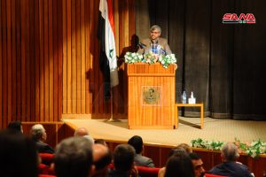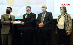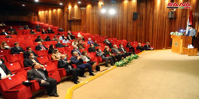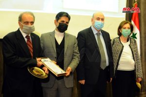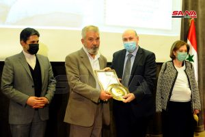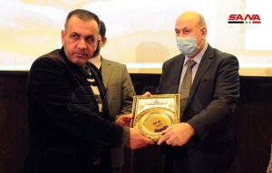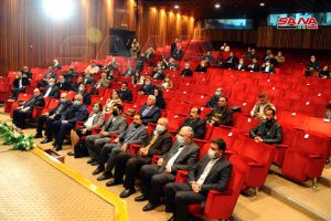 حفل المهرجان الأدبي الذي استضافته مكتبة الأسد الوطنية اليوم بكلمات وقصائد تغنت بقيم ومآثر الشهادة والشهداء بمناسبة الذكرى السنوية لاستشهاد قاسم سليماني القائد السابق لفيلق القدس في الحرس الثوري الإيراني وأبو مهدي المهندس نائب رئيس هيئة الحشد الشعبي العراقي السابق ورفاقهما.
