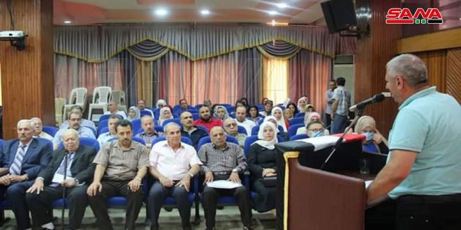 وقدم الأديب الدكتور راتب سكر محاضرة بعنوان (الشعر ورسالته الكبرى بين الدكتور وجيه البارودي وعمر يحيى) أضاء خلالها على جوانب إبداعية شكلت ما يمكن تسميته رسالة الشعر الكبرى عند الشاعرين الحمويين.