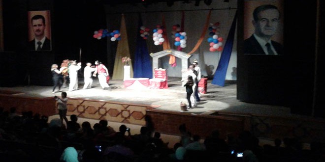 العمل المسرحي / رسالة من بطل/ الذي قدمه فرع طلائع البعث في اللاذقية نال حصته من العرض ليومين متتاليين في المهرجان وهو من كتابة واخراج زياد درويش الذي تحدث ل/سانا/ الثقافية عن معاني المسرحية وأهدافها قائلا// ركزت في هذه المسرحية التي قام الاطفال ببطولتها وأداء جميع الادوار والرقصات التعبيرية فيها على ترسيخ معنى الشهادة والشهيد والبطولة التي يسطرها الجيش في جميع ارجاء سورية لتحقيق النصر المنتظر كما قدمت صورة ام الشهيد الصابرة المضحية المعطاءة واستقبالها لجثمان ابنها الذي قدمته قربانا للوطن للخلاص من المجموعات الارهابية المسلحة وقد استطاع الاطفال ببراءتهم وحماسهم تأدية الأدوار بالشكل المطلوب منهم للتأكيد بلسانهم على أن مصير الخونة سيكون