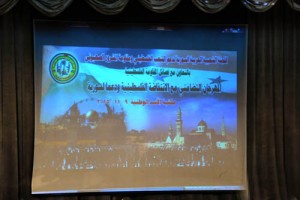 تضامنا مع انتفاضة الشعب الفلسطيني في مواجهة جرائم الاحتلال الإسرائيلي ودعما لصمود سورية في وجه الحرب الإرهابية التي تستهدفها نظمت اللجنة الشعبية العربية السورية لدعم الشعب الفلسطيني ومقاومة المشروع الصهيوني بالتعاون مع فصائل المقاومة الفلسطينية اليوم مهرجانا تضامنيا في مدرج مكتبة الأسد الوطنية بدمشق.