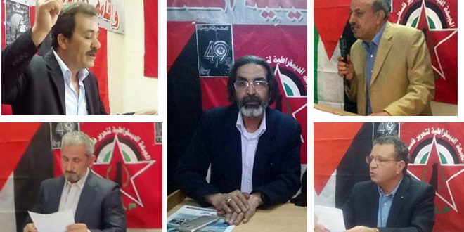 شعراء سوريون وفلسطينيون شاركوا في المهرجان الشعري الذي أقيم في مكتب الجبهة الديمقراطية لتحرير فلسطين بمخيم جرمانا مقدمين خلاله قصائد وطنية وإنسانية.