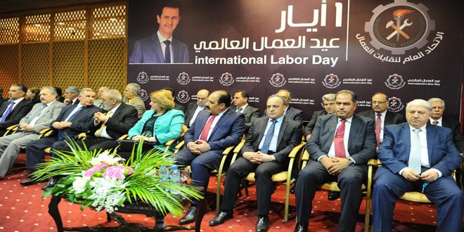 بمناسبة عيد العمال العالمي أقام الاتحاد العام لنقابات العمال اليوم مهرجانا مركزيا في مجمع صحارى بريف دمشق.