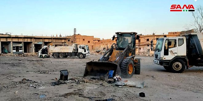 وأفاد رئيس مجلس مدينة السخنة شهاب عوض لمراسل سانا بأن إعادة تأهيل مرافق المدينة الخدمية تأتي ضمن خطة الحكومة لإعادة المهجرين إلى مناطقهم بعد توفير الأمان من قبل أبطال الجيش العربي السوري مشيراً إلى أنه تم حتى الآن رفع وترحيل نحو 3000 متر مكعب من الأتربة والانقاض التي خلفها الإرهابيون وتجاوزت نسبة إنجاز ترحيل الكميات الموجودة أكثر من 70 بالمئة كما تم فتح الشوارع الرئيسة بالمدينة والشوارع المؤدية للدوائر الحكومية.