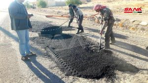 ولفت إلى أن مديرية الخدمات الفنية بحمص قامت بترقيع الحفر وإصلاحها على الطريق الرئيسي الواصل لداخل مدينة السخنة كما تقوم ورشات مياه الشرب بإعادة تأهيل شبكة المياه الواصلة من منطقة روض الوحش التي تبعد 40 كم غرب السخنة إلى منازل المواطنين بالمدينة إلى جانب قيام ورشات الكهرباء بالكشف على الشبكة الكهربائية المتضررة لإعادة تأهيلها والسعي لتركيب محولة كهربائية في مركز المدينة اضافة لإجراء الدراسات المطلوبة لإعادة تأهيل الخط 20 KVA الواصل من مدينة تدمر إلى مدينة السخنة.