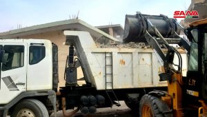 تواصل الورشات الفنية التابعة لمديرية الخدمات الفنية بحمص العمل لإعادة تأهيل البنى التحتية في مدينة السخنة المتضررة جراء اعتداءات تنظيم (داعش) الإرهابي قبل اندحاره من المنطقة التي تبعد 80 كم شرق مدينة  تدمر.