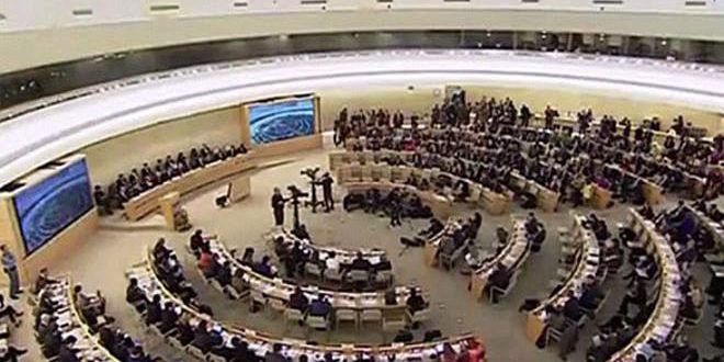 وقال ممثل الوفد الروسي أليكسي غولتياييف خلال جلسة مجلس حقوق الإنسان في جنيف اليوم إن “الرعاة الخارجيين للتشكيلات المسلحة غير الشرعية في سورية يثيرون ضجة إعلامية ويطلقون تصريحات مدوية فيما يفشل الإرهابيون في الغوطة الشرقية الهدنة الإنسانية ويعرقلون خروج المدنيين ويستخدمونهم كدروع بشرية ويقصفون الممرات الإنسانية”.