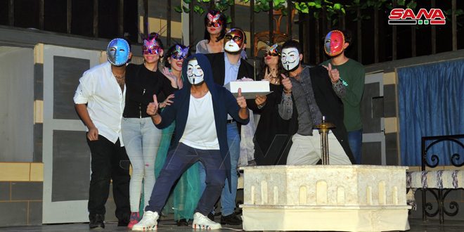 ويستمر عرض العمل على خشبة المسرح القومي حتى العاشر من الشهر القادم وهو من تمثيل مصطفى جانودي وحسن صقر وكمال فضة وراما قرحالي وعمار حسن ومحمد ابراهيم وقيس زريقة ووفاء غزال ونور الصباح غزال وغربة مريشة وجعفر درويش.