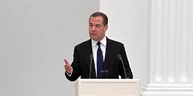 وتابع ميدفيديف: إن الدولة الأوكرانية في تشكيلتها الحالية مع النظام السياسي النازي ستشكل تهديداً مستمراً ومباشراً وواضحاً لروسيا.