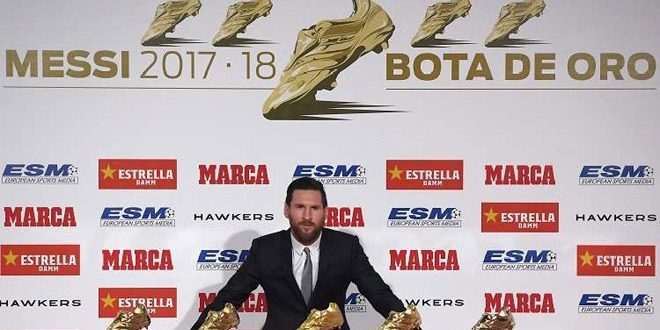 وسجل ميسي 34 هدفا خلال موسم 2017-2018، ليتوج بالجائزة للمرة الخامسة في تاريخه، متفوقا على البرتغالي كريستيانو رونالدو الذي يمتلك 4 ألقاب.