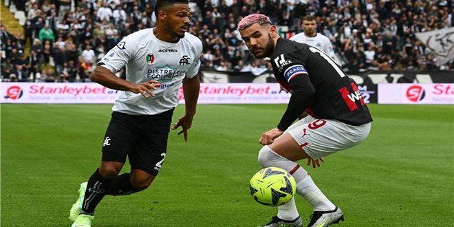 مني فريق ميلان بهزيمة مؤثرة أمام مضيفه سبيزيا بثنائية نظيفة في المباراة التي جمعتهما مساء اليوم ضمن منافسات الجولة الـ 35 من الدوري الإيطالي لكرة القدم.