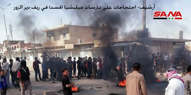 مصادر محلية ذكرت لمراسل سانا أن مجموعات مسلحة من ميليشيا “قسد” شنت حملة مداهمات طالت منازل المدنيين في منطقة اللطوة في بلدة ذيبان بريف دير الزور الشرقي واختطفت عدداً منهم واقتادتهم إلى جهة مجهولة.