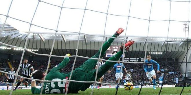 نابولي يتغلب على أودينيزي ويستعيد صدارة الدوري الإيطالي بكرة القدم