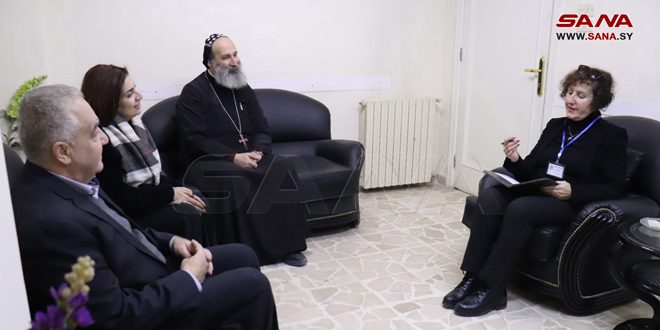 بدوره لفت المطران قسيس إلى دور الكنيسة في نقل الصورة الحقيقية لما يجري في سورية ورفع راية الإنسانية عالياً لمساعدة الشعب السوري في كل المصائب التي ألمت به عبر سنوات، والوقوف بجانبه للنهوض من جديد، وإزالة العقبات المتمثلة في العقوبات أحادية الجانب المفروضة من قبل الغرب.