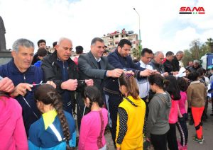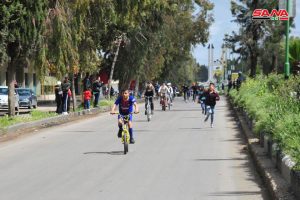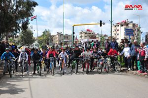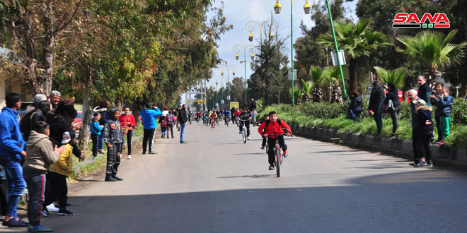 بمناسبة عيد الجلاء نظمت وزارة التربية بالتعاون مع الاتحاد الرياضي العام اليوم مهرجانا تضمن سباقا بالدراجات للدوران من دوار الملعب البلدي وصولا إلى دوار الباسل وبالعكس بمشاركة نحو 350 طفلا مثلوا مختلف مدارس المحافظة.