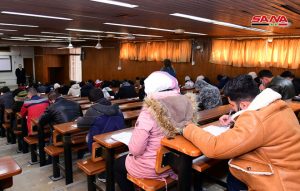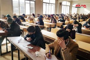 وأشار الدكتور صبحي البحري نائب رئيس جامعة دمشق للشؤون الإدارية في تصريح لـ سانا إلى أن نحو 150 ألف طالب وطالبة يتقدمون للامتحانات بجامعة دمشق وفروعها في درعا والقنيطرة والسويداء حيث تمت تهيئة الظروف المناسبة للطلاب لتقديم امتحاناتهم ضمن أجواء مريحة وتأمين وسائل التدفئة والنظافة العامة داخل القاعات والتأكيد على التقيد بالتعليمات الناظمة للامتحانات وتوجيه عمداء الكليات ونوابهم للقيام بجولات دورية على القاعات لمراقبة سيرها ومتابعة ومعالجة كل الأمور المستجدة والطارئة.