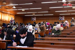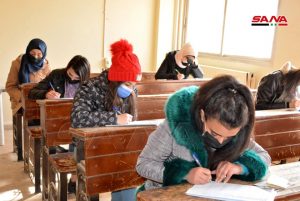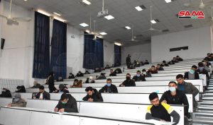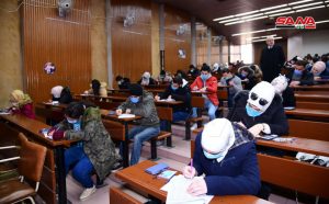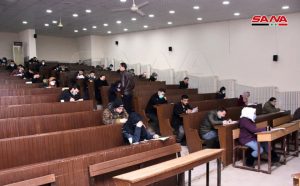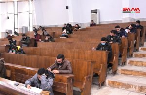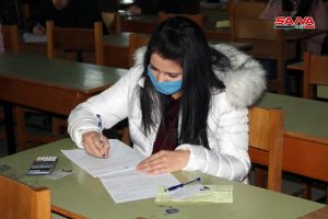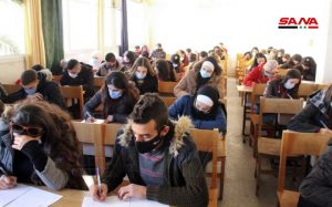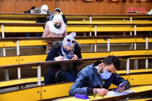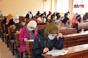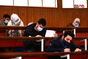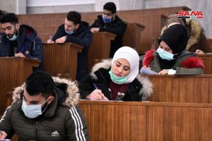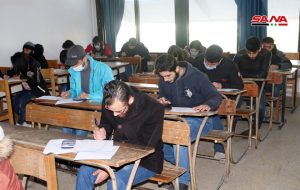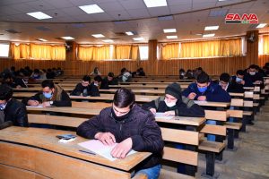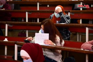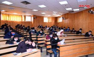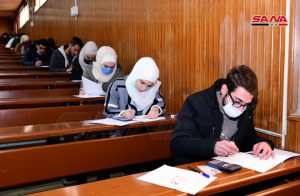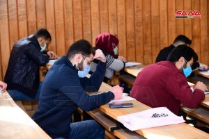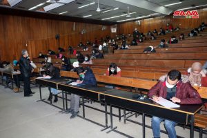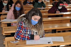 وفي كلية الهندسة الميكانيكية والكهربائية بجامعة دمشق يتقدم للامتحانات وفق الدكتور مصطفى الموالدي عميد الكلية 17 ألف طالب وطالبة حيث تقام يومياً جلستان امتحانيتان مدة كل واحدة ساعتان لافتاً إلى أنه تم توجيه المراقبين للالتزام بالتعليمات الخاصة للعمل داخل القاعات الامتحانية وتحديد المسؤوليات لكل من رئيس وأمين القاعة والمراقب مع تأكيد أن يكون هناك عضو هيئة تدريسية على الأقل في كل قاعة من أجل متابعة أمور الطلبة وتقديم العون لهم إضافة إلى التأكيد على ضرورة الالتزام بإجراءات التصدي لوباء كورونا من ارتداء الكمامات وتحقيق التباعد المكاني.