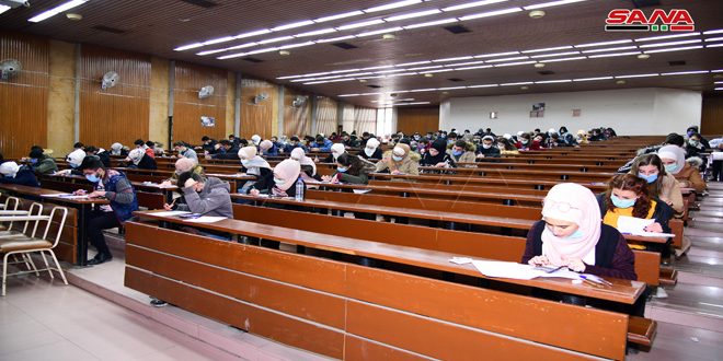 ويتقدم للامتحانات وفق بيان لوزارة التعليم العالي والبحث العلمي تلقت سانا نسخة منه نحو 600 ألف طالب وطالبة مبينة أنه تم الطلب من جميع الجامعات تأمين كل مستلزمات العملية الامتحانية واتخاذ الإجراءات المطلوبة لضمان سيرها بالشكل الأمثل إضافة إلى التشدد بإجراءات التصدي لوباء كورونا والالتزام بالتعليمات الصحية ومنع دخول أي طالب إلى القاعة الامتحانية دون ارتداء الكمامة وإجراء عمليات التعقيم الكامل لجميع القاعات والمراكز الامتحانية.