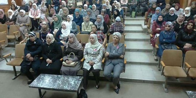 وضمن هذا الإطار أقام اتحاد عمال محافظة درعا ندوة توعوية حول أهمية الكشف المبكر عن سرطان الثدي اليوم بمشاركة نحو 100 سيدة.