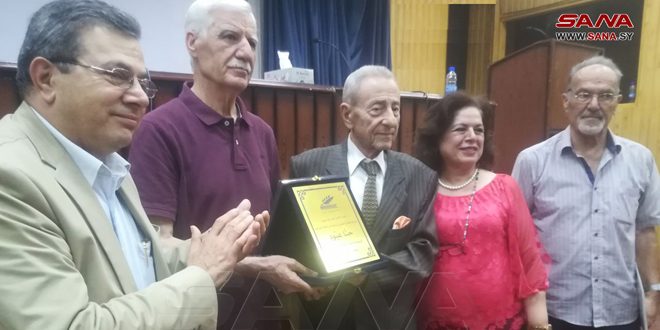واشارت الأديبة أميمة إبراهيم رئيسة فرع حمص لاتحاد الكتاب العرب إلى توجهات الاتحاد لتكريم المتميزين من أعضائه الذين أسهم نتاجهم الأدبي في صنع معالم ظاهرة لثقافتنا منوهة بالنتاج الثقافي المميز للباحث والناقد حنا عبود.