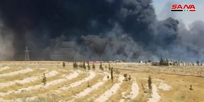 وذكر مراسل سانا من المكان أن فرق الإطفاء التي توجهت على الفور إلى موقع الحريق عملت على تطويقه وبدأت بإخماده بعد أن تسبب بانفجار لغم أرضي من مخلفات الإرهابيين.