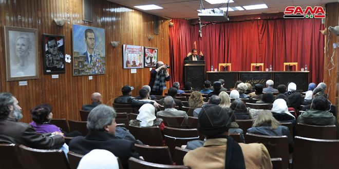 كما ألقى الشاعر جمال المصري نصوصاً شعرية تدفق فيها الحس الوطني والتعبير عن حب دمشق واستنكار أي تقصير أو خلل يمكن أن يقوم به الإنسان أمام حماية الوطن معتبراً أن الشهيد أهم ما في الوجود بأسلوب شعري اعتمد فيه البحر الكامل والعاطفة الصادقة فقال: