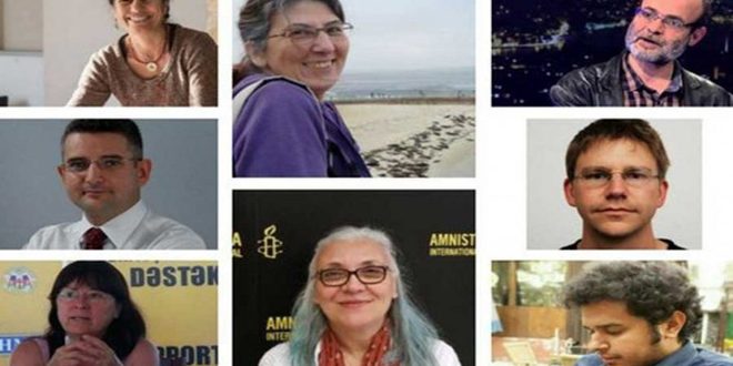 وذكرت وكالة رويترز أن المحاكمة التي تجري في اسطنبول تشمل 11 ناشطا في مجال حقوق الإنسان بينهم مديرة الفرع التركي لمنظمة العفو الدولية إديل إسير وناشط ألماني يدعى بيتر فرانك شتودنر وآخر يحمل الجنسية السويدية ويدعى علي غروي حيث يواجهون أحكاما بالسجن تصل إلى 15 عاما في اتهامات تزعم “انتماءهم إلى منظمة إرهابية مسلحة وتقديم المساعدة لها”.