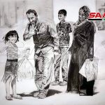 الشاب العشريني ابن قرية خلخلة بريف السويداء وثق كذلك بقلم الفحم على سطح لوحاته التي اتسمت بالواقعية أوجاع الناس في ظل ظروف الحرب ومنعكساتها عليهم فنقل وجسد معاناة مهجرين يحملون ممتلكاتهم وأطفالهم فوق أكتافهم وصور الموت والضياع والدمار التي خلفها الإرهاب ولوعة أم سورية تنتظر ولدها المختطف.