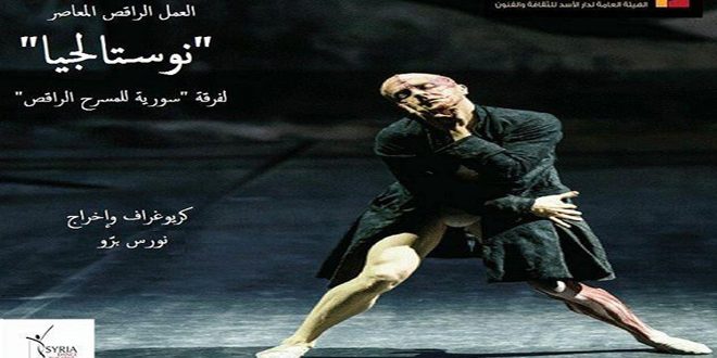 تقدم فرقة سورية للمسرح الراقص عرضها المعاصر الجديد ” نوستالجيا ” من تأليف وكريوغراف وإخراج مؤءسس الفرقة الفنان نورس برو وذلك عند السادسة من مساء الخميس القادم على مسرح الدراما في دار الأسد للثقافة والفنون بدمشق.