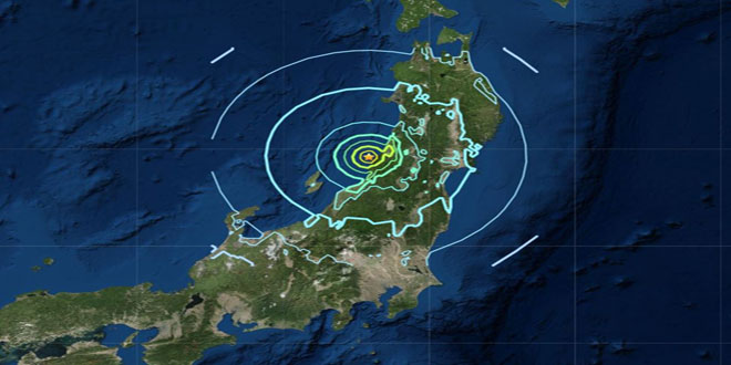 وحسب مركز البحث الجيولوجي الأوروبي فقد ضربت الهزة منطقة على بعد 58 كيلومتراً شمال العاصمة طوكيو وتم تحديد مركزها في الجزء الجنوبي من مقاطعة إيباراكي .