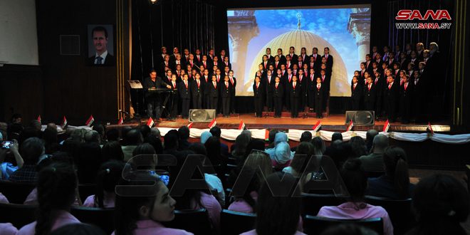 دعماً للشعب الفلسطيني ولا سيما في قطاع غزة، وتنديداً بجرائم الاحتلال الإسرائيلي بحقه، أقامت مدارس أبناء وبنات الشهداء بالتعاون مع مؤسسة “مبدعون من أجل وطن” اليوم مهرجاناً تضامنياً تحت عنوان “هنا فلسطين من دمشق”.