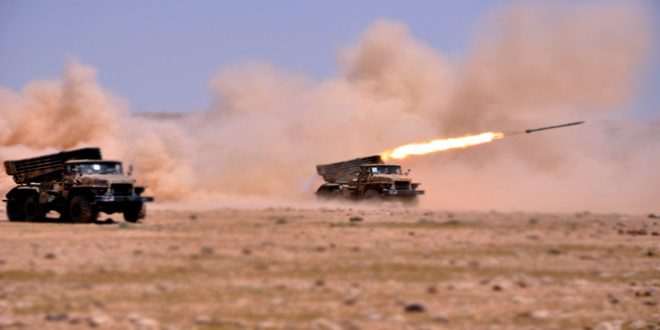 وأفاد المصدر في تصريح لـ سانا بأن وحدات من الجيش وجهت ضربات مكثفة بسلاحي الجو والمدفعية ونيران الرشاشات على مقرات وتحركات تنظيم “داعش” الإرهابي في تلة علوش ومفرق الثردة والمكبات ومنطقة البانوراما والتلال المحيطة وطريق تدمر وحي الرشدية وقريتي الجنينة وعياش.