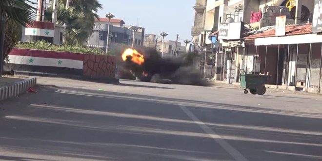 فجرت وحدات الهندسة في الجيش العربي السوري عبوة ناسفة زرعها إرهابيون بسيارة خاصة عند دوار بلدة خان أرنبة بريف القنيطرة.