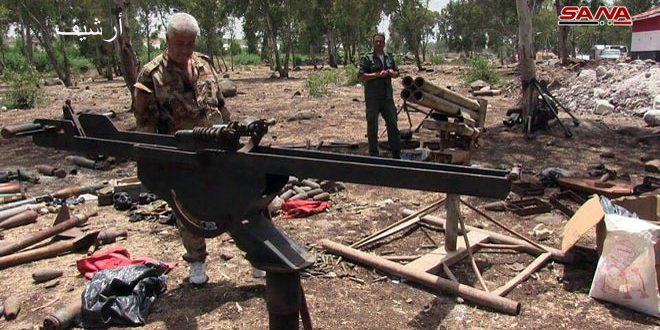 وعثرت وحدات الهندسة بالتعاون مع الجهات المختصة خلال تمشيطها قرى الريف الشمالي خلال الأيام الماضية على قذائف صاروخية وهاون متنوعة وألغام وبنادق حربية ورشاشات وأقنعة واقية من مخلفات الارهابيين.