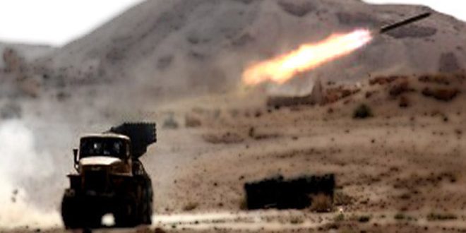 وذكر مصدر عسكري لسانا أن “وحدات من الجيش قصفت بمختلف أنواع الأسلحة الثقيلة والمتوسطة مواقع وتحصينات لمجموعات إرهابية تابعة لتنظيم “داعش” شرق المحطة الرابعة ومنطقة الفواعرة غرب تدمر.