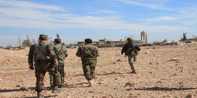 وتعمل وحدات الجيش العاملة في ريف السويداء الشمالي والشمالي الشرقي بالتعاون مع مجموعات الدفاع الشعبية على إحباط محاولات إرهابيي “داعش” التسلل إلى التجمعات السكانية في تلك المناطق ومنع تهريب الأسلحة والذخيرة عبر المساحة الشاسعة للبادية السورية المفتوحة على الحدود الأردنية والعراقية.
