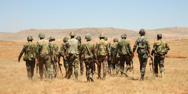 وأفاد مصدر عسكري في تصريح لـ سانا بأن “وحدات من الجيش والقوات المسلحة بالتعاون مع مجموعات الدفاع الشعبية وجهت ضربات مكثفة على أوكار ومحاور تحرك إرهابيي تنظيم “داعش” شمال شرق حقل جزل وجنوب شرق قرية أبو الحواديد” شرق مدينة حمص بنحو 75 كم.