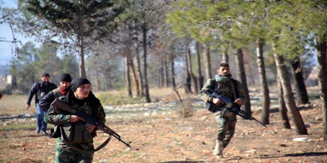 فرضت وحدات من الجيش بالتعاون مع مجموعات الدفاع الشعبية سيطرتها على النقطة 5ر458 على اتجاه جبل الأسود الكبير بريف اللاذقية الشمالي، بينما تقدمت وحدات أخرى من الجيش بمحيط النشابية ومحيط مرج السلطان ومزارع حرستا وأوقعت 27 إرهابيا بين قتيل ومصاب بالغوطة الشرقية، فيما أكدت مصادر ميدانية سقوط أكثر من 14 قتيلا في صفوف إرهابيي “جيش الفتح” المرتبط بنظامي أردوغان وآل سعود خلال عمليات للجيش والقوات المسلحة على أوكارهم في مناطق متفرقة من ريفي إدلب وحماة.