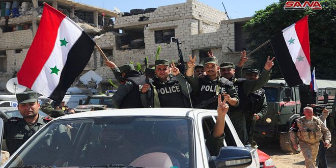 وأكد عناصر الشرطة أن دخول مدينة دوما بعد اندحار إرهابيي (جيش الإسلام) منها جاء بفضل تضحيات الجيش العربي السوري وقوى الأمن الداخلي ودماء الشهداء التي أنبتت الأمن والاستقرار وطهرت الأرض من الإرهاب.